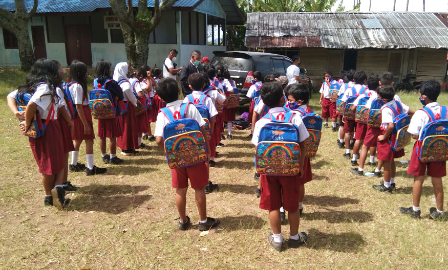 Kegiatan Belajar Tatap Muka Diselenggarakan, STP Bagikan Masker dan Tas Sekolah untuk Siswa Sekolah Dasar di Simalungun