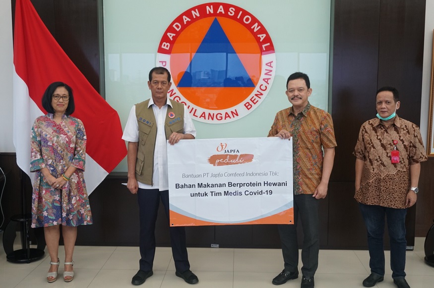 Jakarta, 26 Maret 2020 – PT Japfa Comfeed Indonesia Tbk (JAPFA) melalui program JAPFA Peduli melakukan aksi cepat tanggap mendukung pemerintah menangani pandemi COVID-19. Hari ini, JAPFA menyerahkan bantuan senilai Rp 700 juta untuk tim medis melalui Badan Nasional Penanggulangan Bencana (BNPB) berupa bahan makanan yang mengandung protein hewani. Bantuan diserahkan langsung oleh Rachmat Indrajaya, Direktur Corporate Affairs JAPFA kepada Letjen (TNI) Doni Monardo, Ketua Gugus Tugas Percepatan Penanganan COVID-19 di Kantor Pusat BNPB.