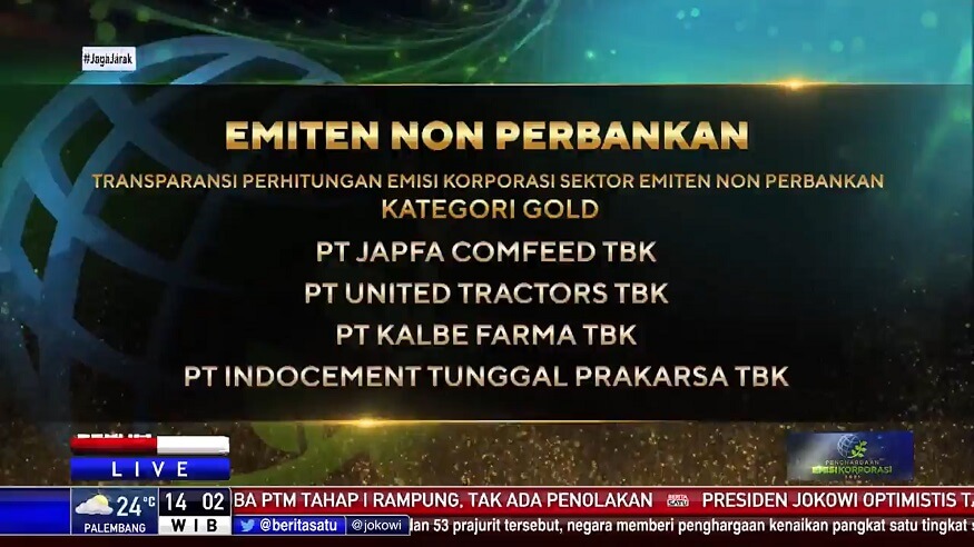 Jakarta, 29 April 2021 - PT Japfa Comfeed Indonesia Tbk hari ini (29/04) meraih penghargaan Emisi Korporasi 2021 untuk Transparasi Perhitungan Emisi Korporasi Sektor Emiten Non Perbankan Kategori Gold. Penghargaan diperuntukan untuk perusahaan yang telah berkontribusi dalam penurunan emisi nasional serta transparasi penghitungannya diinisasi oleh Majalah Investor yang bekerjasama dengan PT Bumi Global Karbon dan Berita Satu Media Holdings.